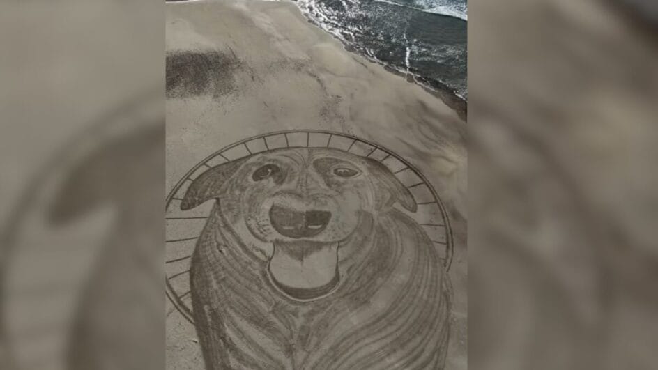 O cão comunitário Orelha, que morreu após ser vítima de maus-tratos, foi homenageado com uma arte de cerca de 40 metros desenhada na areia da Praia da Galheta, em Florianópolis, nesta quarta-feira (28). O trabalho foi feito pelo artista Clayton Balduino.