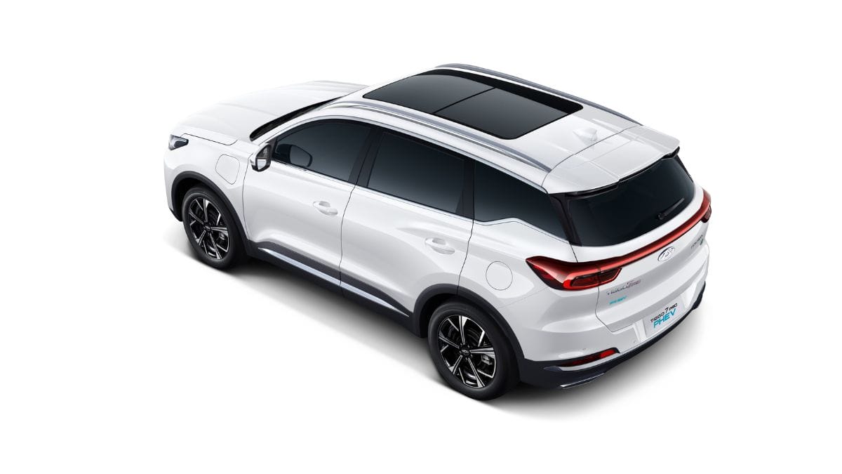 Externamente, o Tiggo 7 apenas nesta versão topo de linha PHEV ganhou frisos laterais abaixo dos faróis de led, novo para-choque frontal e novo desenho das rodas diamantadas de 18”, que calçam pneus 225/60 R18.