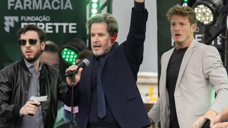 Na ocasião, Gerluce (Sophie Charlotte) encontra Paulinho (Romulo Estrela) a serviço, acompanhado do delegado Jairo (André Mattos) e Juquinha (Gabriela Medvedovsky). O clima está melhor entre os dois após ela pedir perdão por ter escondido informações sobre Rogério. A cerimônia começa e Ferette discursa para o público, apresentando Leonardo (Pedro Novaes) como seu sucessor no comando da Fundação. Arminda (Grazi Massafera) acompanha o discurso de perto. Neste momento, Misael (Belo) está com sua arma na mira do empresário, pronto para colocar o plano em prática no momento mais oportuno.