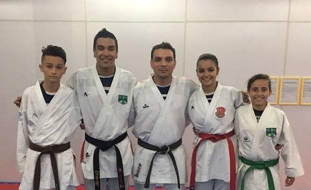Caio Rodrigues, do sub-14, 50 kg; Kaique Rodrigues, do kumitê sub-21, 84 kg; Sidnei Maciel (técnico); Izabela Rainho, do kumite sub-21, 61 kg; e Alana Maciel, do kumitê sub-14, 35 kg; representam o TeamMaciel/Yokohama e buscam vaga no Mundial, em novembro, na Espanha.