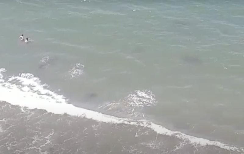 Um cardume de cerca de 100 raias foi avistado na tarde deste domingo (7) no mar de Balneário Camboriú, no Litoral Norte de SC. Os peixes estavam próximos aos banhistas, na região Barra Sul.