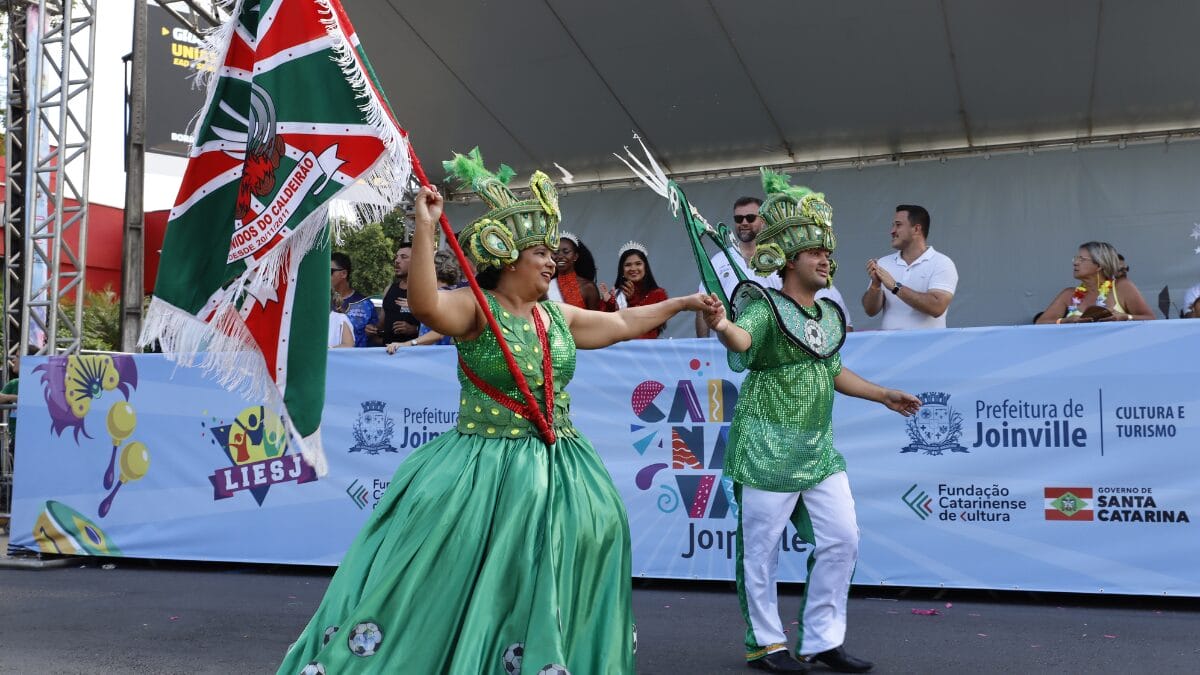 Já a Unidos do Caldeirão foi a última escola a desfilar. Com o tema “Glórias e conquistas – o voo da Fênix leva a várzea joinvilense para a avenida”, a escola celebra as suas raízes na cidade. Com berço em clube de futebol, a Caldeirão destaca em seu samba-enredo os 90 anos de história do futebol amador em Joinville.