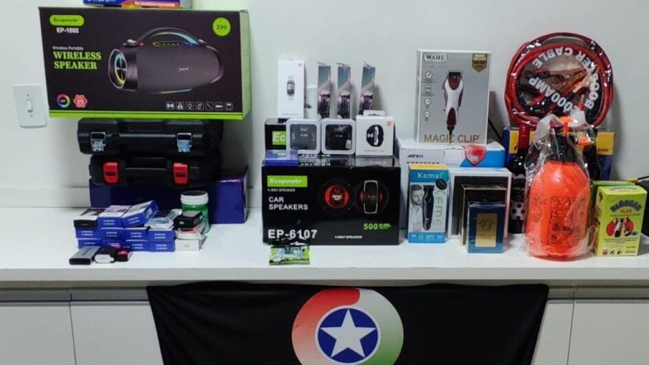 Na vistoria veicular, os policiais encontraram diversos cigarros eletrônicos e outros produtos variados que não possuíam o devido desembaraço aduaneiro, caracterizando as práticas de descaminho e contrabando.