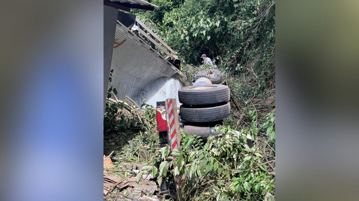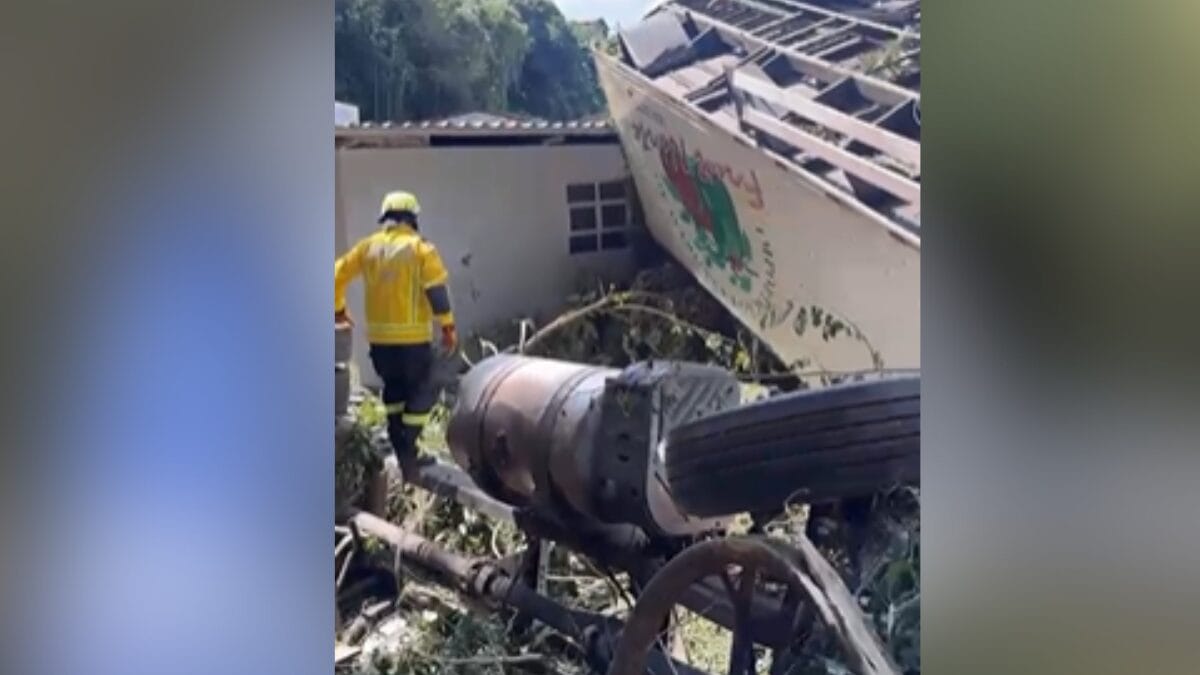 Além disso, o caminhão acabou colidindo contra parte de uma residência, porém, conforme informações oficiais, ninguém ficou ferido no imóvel.
