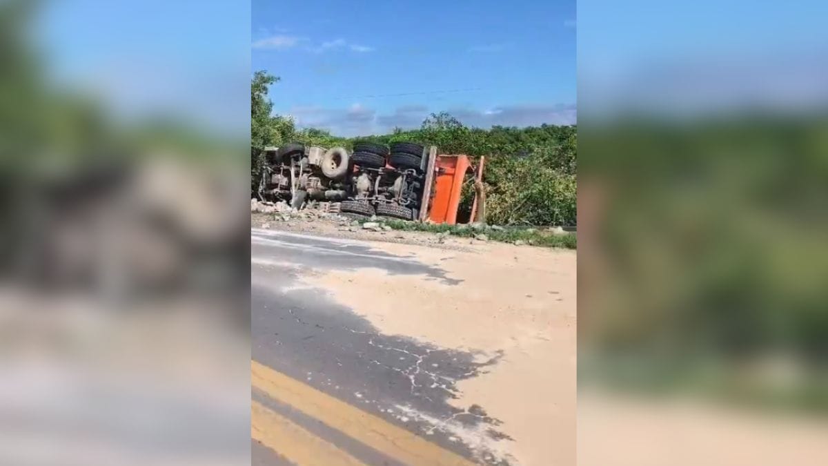Em vídeos registrados por quem passava pelo local, é possível ver a carreta tombada, para fora da pista, em um quase “mergulho” nas águas do canal. Apesar do susto, a PRF informou que não houve vítimas, apenas danos materiais.