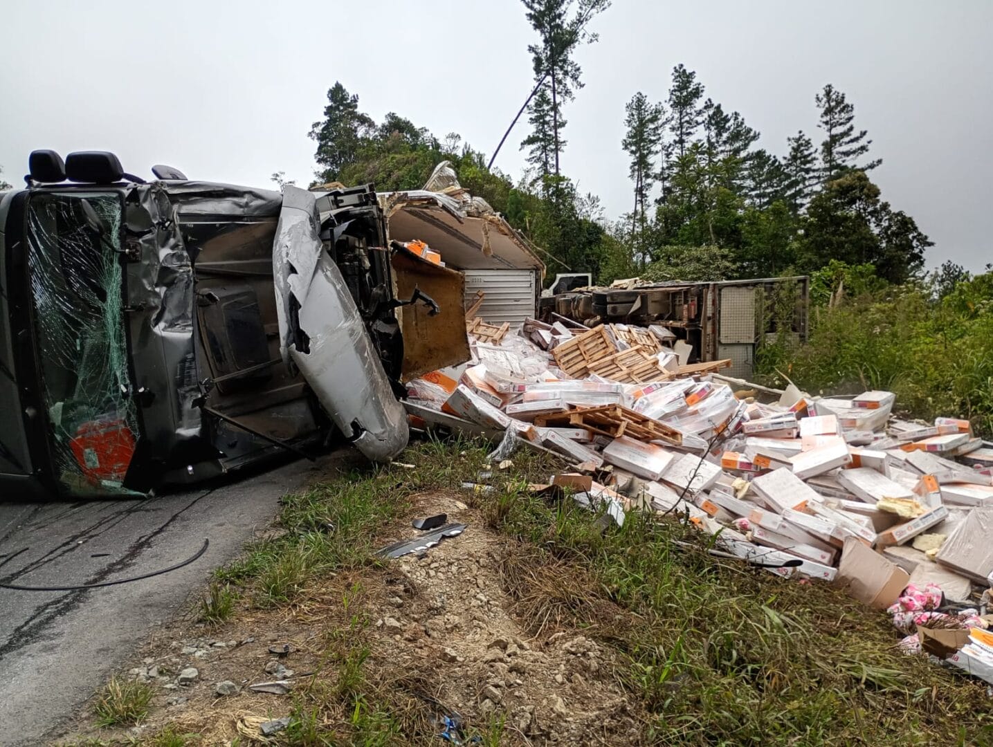 Os bombeiros chegaram a ser chamados para prestar socorro aos caminhoneiros, mas no meio do caminho o serviço foi dispensado, pois não houve feridos. As imagens mostram que uma das carretas parou fora da pista e a outra ocupa a terceira faixa no sentido ao município de Ponte Alta. Um dos veículos estava carregado e o material ficou espalhado às margens da BR-470.