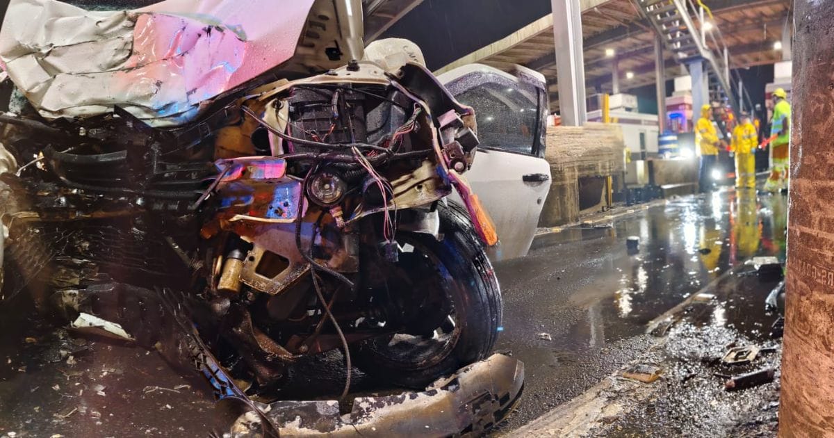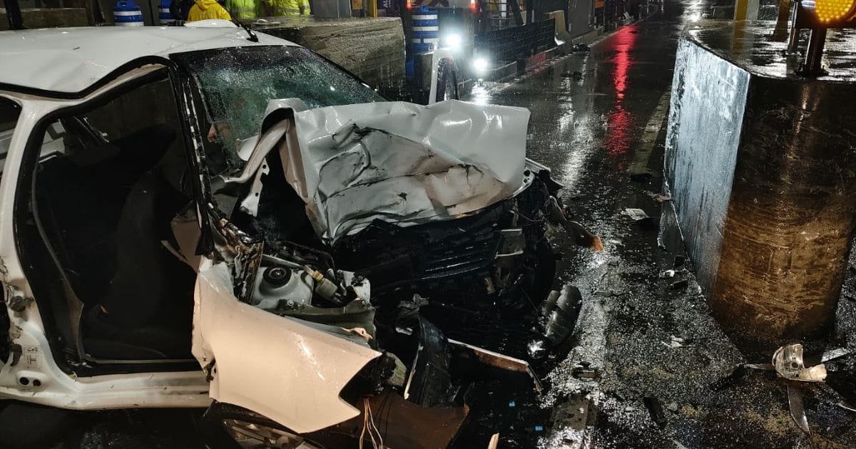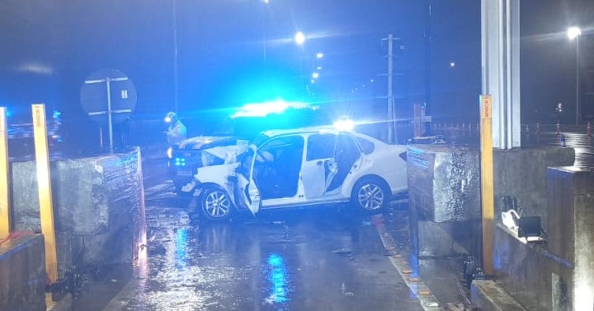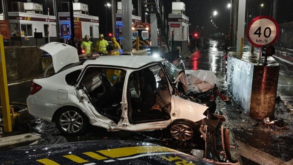 Carro colidiu em mureta de pedágio; veja imagens