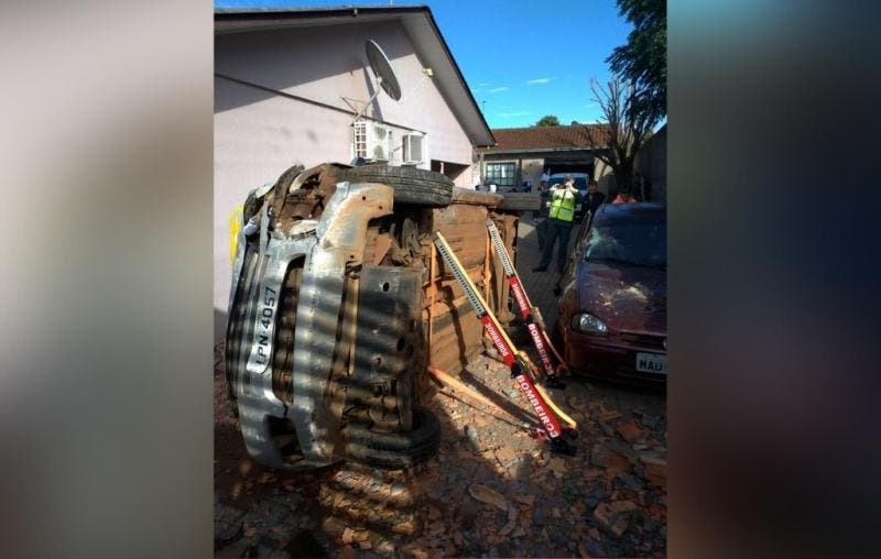 Um idoso ficou ferido após um carro despencar de uma altura de três metros em uma casa na manhã deste domingo (17), em Chapecó, no Oeste de Santa Catarina. O caso ocorreu no bairro Efapi, por volta das 8h30min.