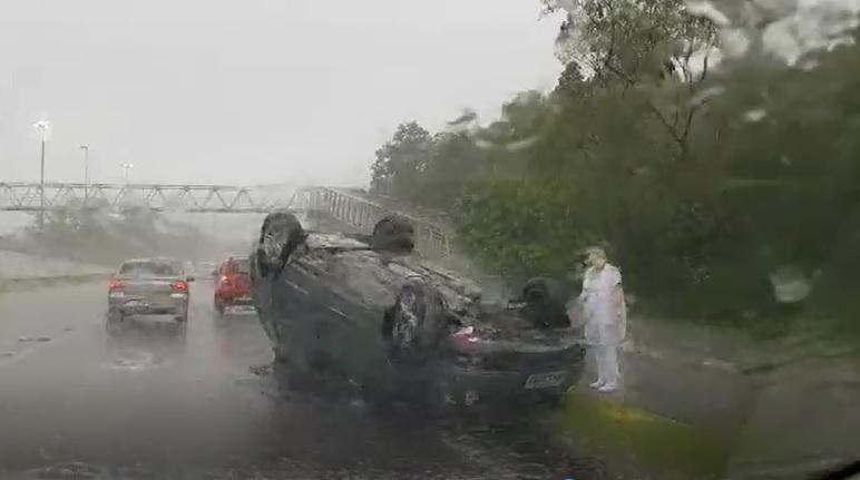 Um Spacefox capotou no sentido Norte da Avenida da Saudade em Florianópolis por volta das 7h desta terça-feira (27). Chovia forte neste horário e, segundo a Guarda Municipal, o acúmulo de água sobre a pista pode ter contribuído para o acidente.