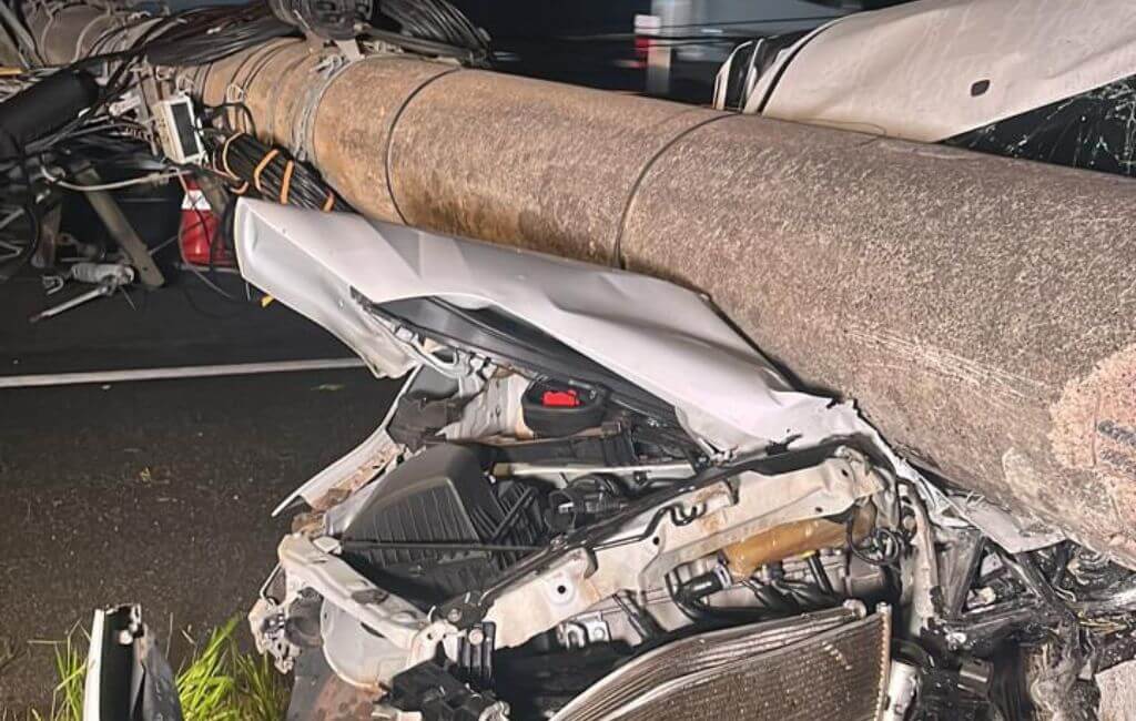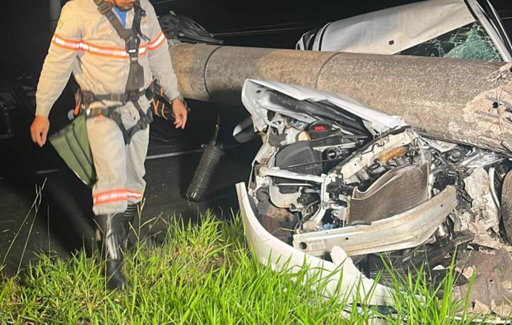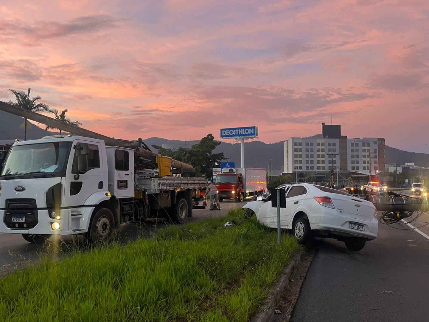 O acidente ocorreu por volta das 4h30. De acordo com a Celesc, não há previsão normalização de energia. Por volta das 7h, o poste foi retirado da via, assim como o carro colocado no acostamento.