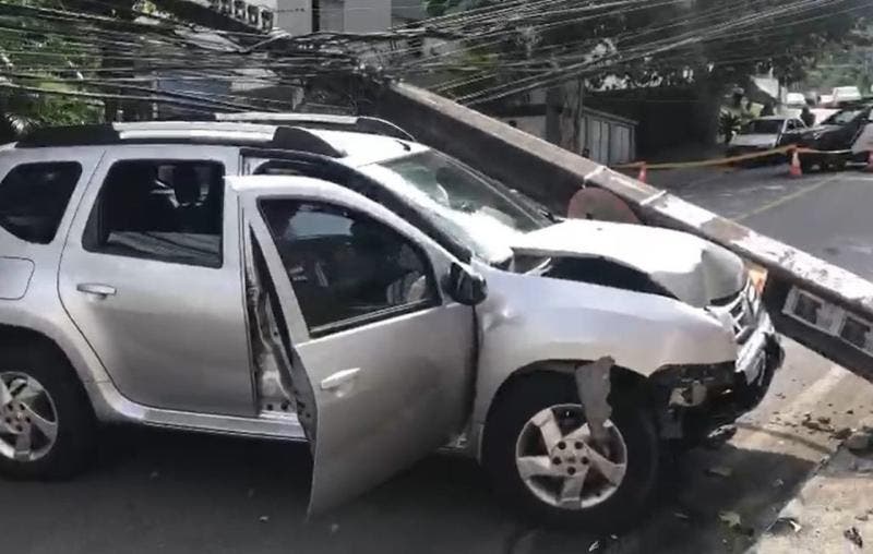 Um carro derrubou um poste após colidir de frente com a estrutura na tarde desta quinta-feira (13) em Florianópolis. O acidente, que aconteceu na Rua Douglas Seabra Levier, na Trindade, deixou cerca de 4 mil unidades sem luz em cinco bairros. Três pessoas estavam no veículo – um homem de 41 anos e duas mulheres, de 44 e 20.