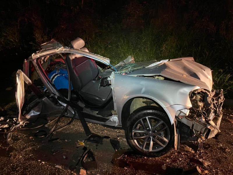 Um grave acidente entre um ônibus de turismo com 42 passageiros e um veículo Golf, com placas de Palmitos, foi registrado na noite de sábado (26) em Caibi, no Oeste de SC. O carro ficou completamente destruído. Segundo o Corpo de Bombeiros, três pessoas ficaram feridas.