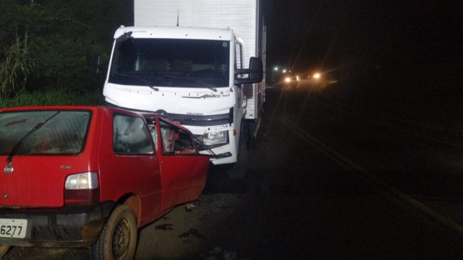 Um homem morreu após uma colisão entre um carro e um caminhão na madrugada desta segunda-feira (13), na SC-157, nas proximidades de um CTG, em Quilombo, no Oeste de Santa Catarina. De acordo com Corpo de Bombeiros Militar, a ocorrência foi registrada por volta das 5h e atendida pelas equipes do quartel de Quilombo, com o apoio das viaturas de resgate.