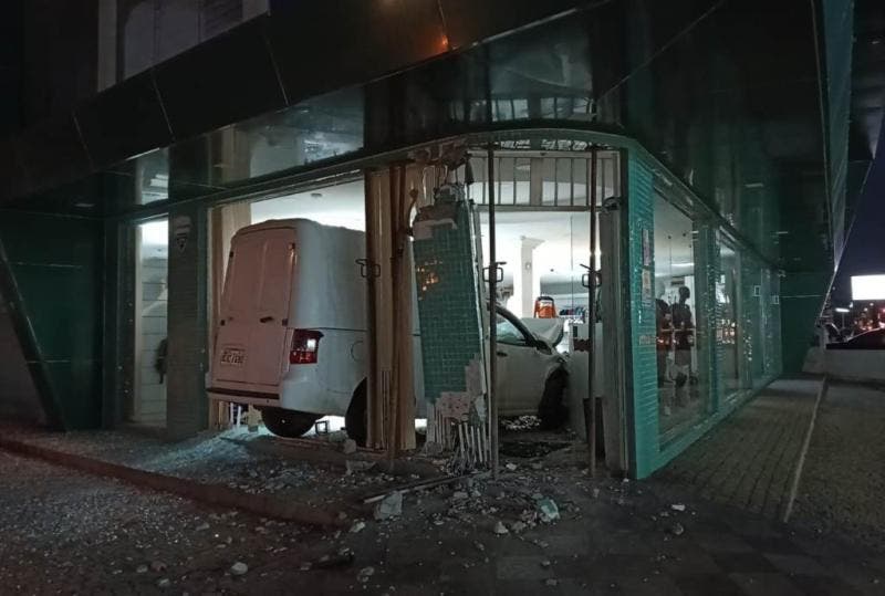 O proprietário do estabelecimento ainda não sabe dizer o tamanho do prejuízo. O vidro da porta de entrada e parte da parede ficaram destruídos. A frente do carro também foi danificada por causa do impacto.