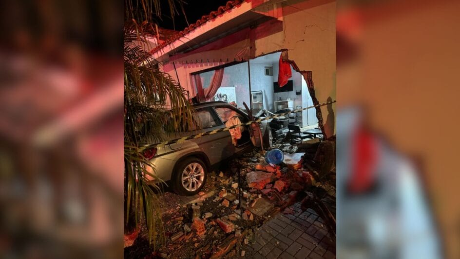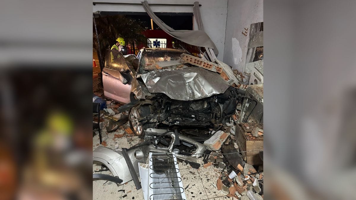 Imagens da ocorrência mostram que a frente do carro ficou destruída com o impacto, assim como móveis que estavam no estabelecimento, incluindo uma geladeira. O morador da residência informou aos policiais que dormia quando ocorreu o acidente e acabou acordando com o barulho da batida.