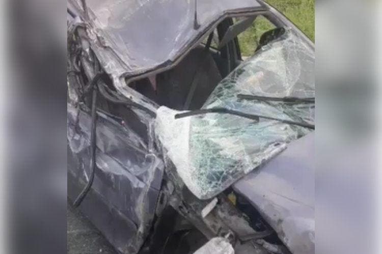 O carro ficou totalmente destruído na queda. O homem, que não teve a identidade divulgada, foi encaminhado em estado grave ao hospital.