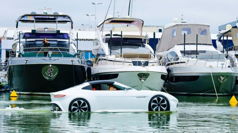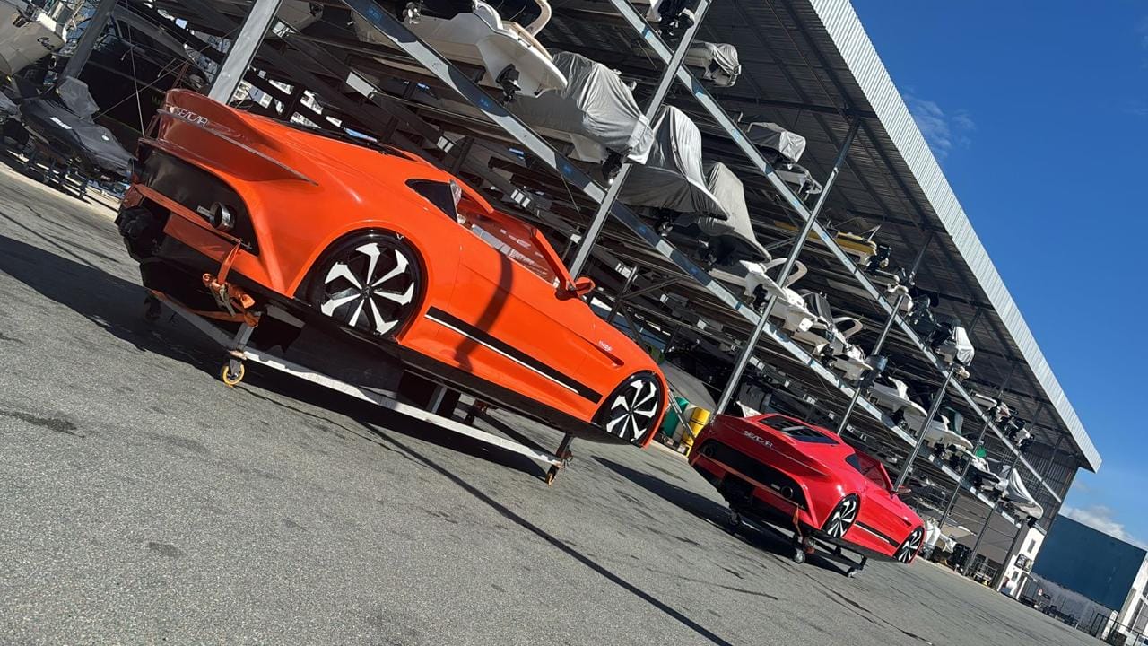 Com desenho inspirado em superesportivos de luxo, o barco-carro Seacar atinge até 100 km/h e chama atenção pela proposta de transformar um passeio de lancha em experiência de “dirigir sobre a água”.