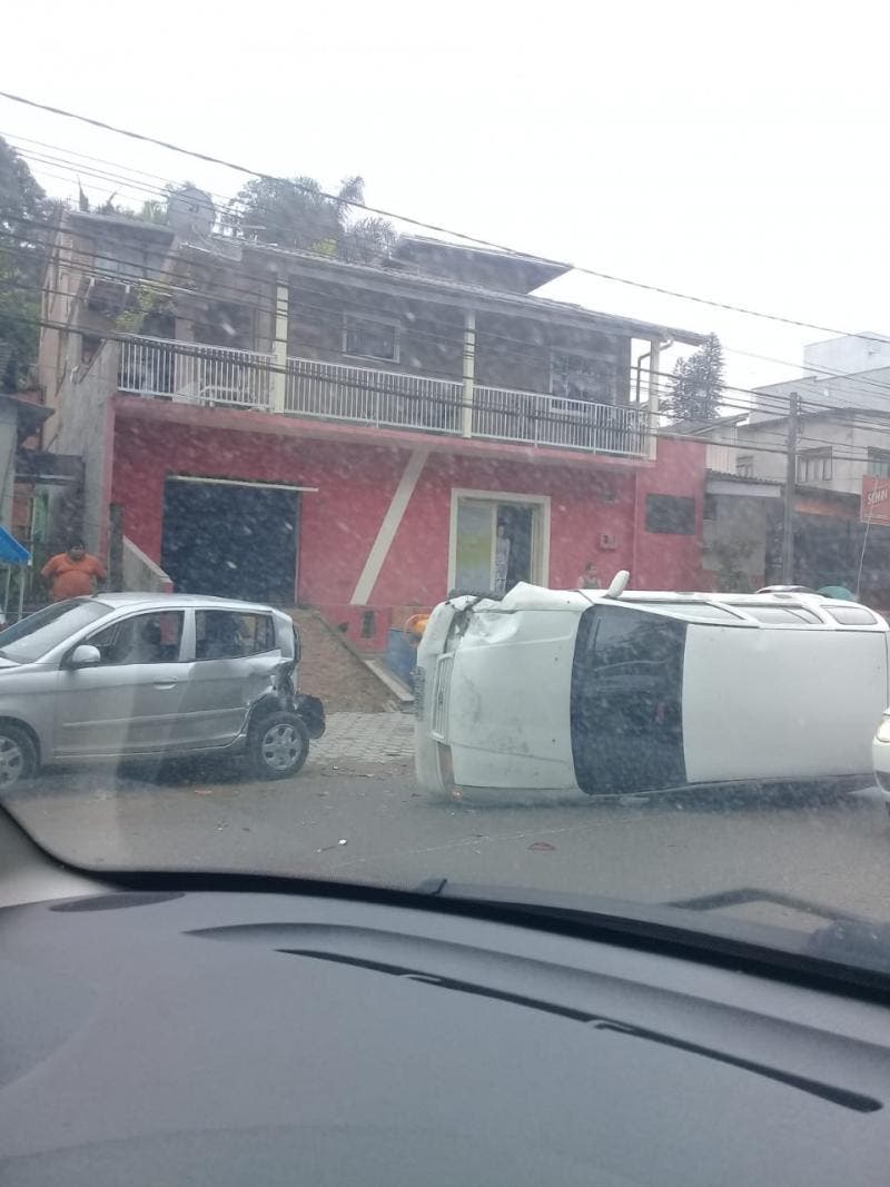 Um acidente na manhã desta quarta-feira deixa o trânsito lento em Blumenau. Segundo a Guarda Municipal de Trânsito, por volta das 7h30min, um veículo tombou e bateu contra outro carro na Rua Bahia, no bairro Salto Weissbach, próximo à empresa Pacífico Sul.