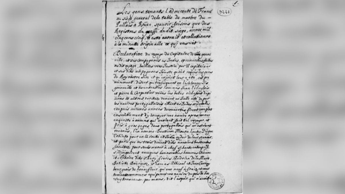 A carta que traz esta história tem dezenas de páginas e conta detalhes da viagem de Gonneville para a região do Litoral Norte de Santa Catarina. Inclusive, o naufrágio, que ocorreu após ataque de piratas no retorno à Europa, e do qual apenas alguns marinheiros sobreviveram.