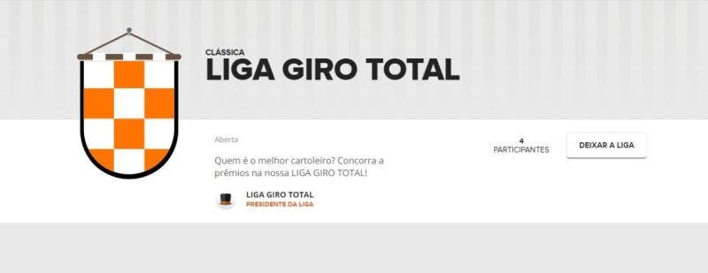 O caminho para participar é muito fácil: basta buscar por “Liga Giro Total” no fantasy game ou acessar o link. A liga é pública e não tem nenhum custo.