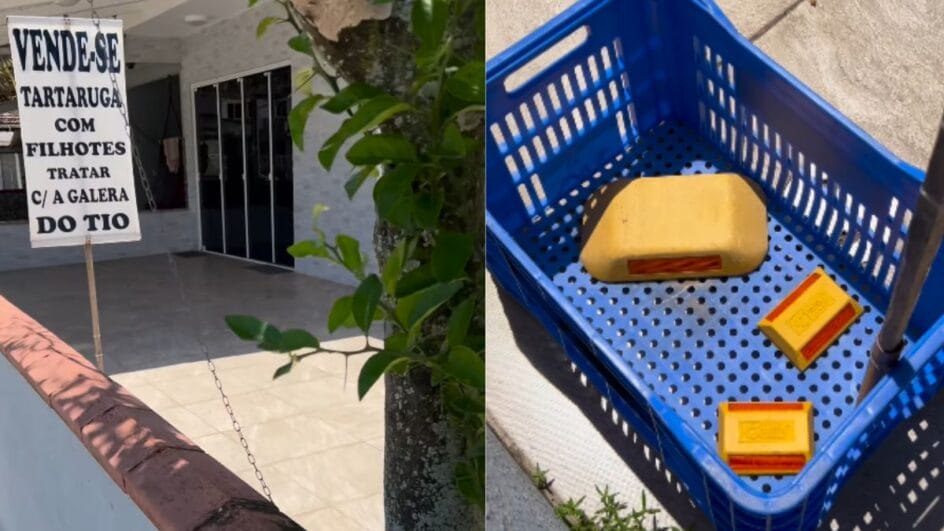 “Vende-se tartaruga com filhotes”, diz a placa colocada no quintal da casa, localizada em uma das praias mais badaladas de São Francisco do Sul, no Litoral Norte de Santa Catarina. Fixada para chamar a atenção de curiosos, quem esticar um pouco o pescoço para ver por cima do muro pode ter uma surpresa: no local há tachões de trânsito, aqueles conhecidos também como “tartarugas”. Essa não é a única decoração inusitada do lar, que está repleto de placas anunciando alguma coisa curiosa. Um vídeo postado nas redes sociais mostra um pouco do local e a publicação já soma mais de 3,5 milhões de visualizações.