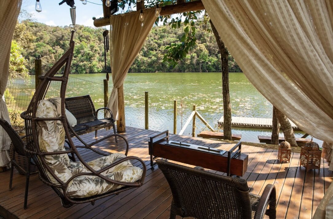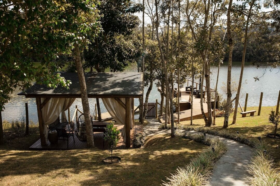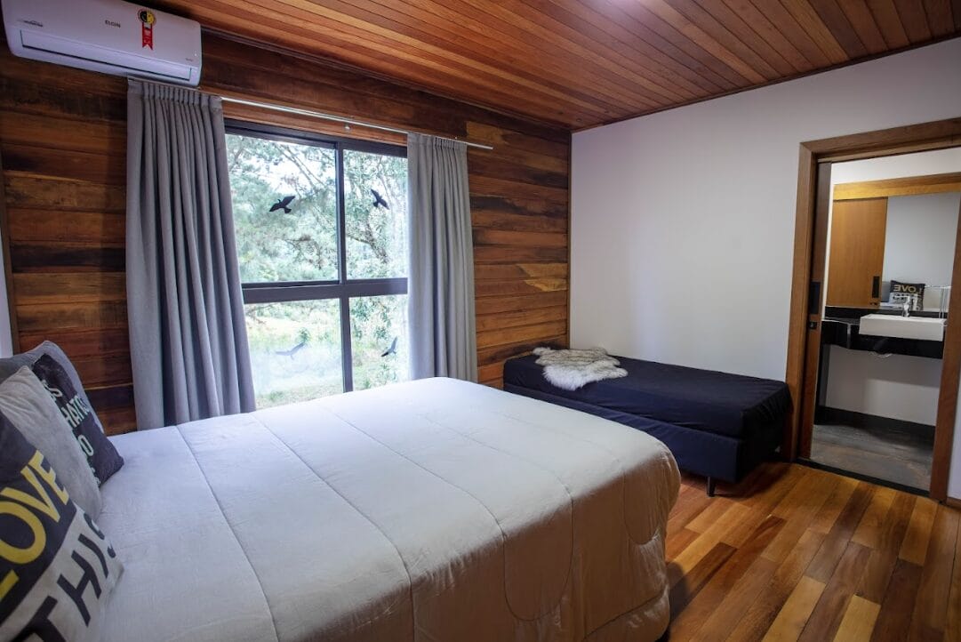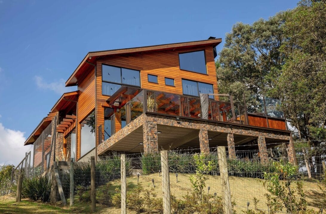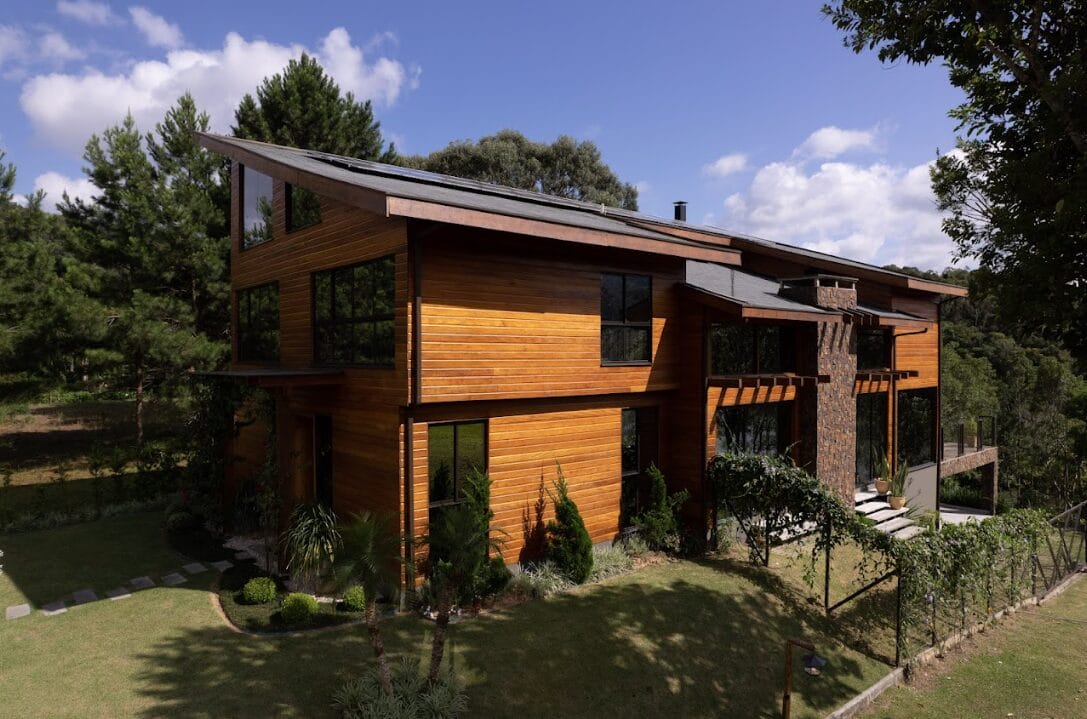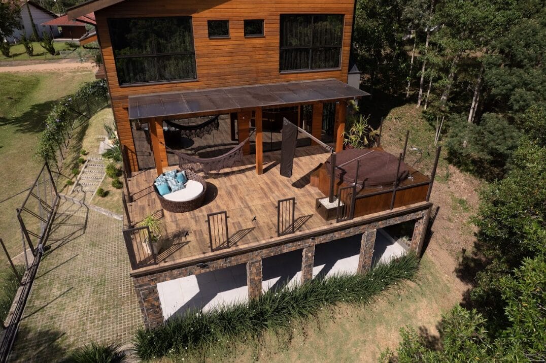 Um casarão imponente e cheio de charme está à venda em Rio dos Cedros, no Vale do Itajaí, por R$ 5,3 milhões. Localizado no condomínio Vivendas do Paraíso, o imóvel combina conforto, sofisticação e integração com a natureza às margens da represa da barragem do Pinhal. A casa foi construída com parte em alvenaria e outra em madeira nobre, com paredes duplas. São 500 metros quadrados de área construída.
