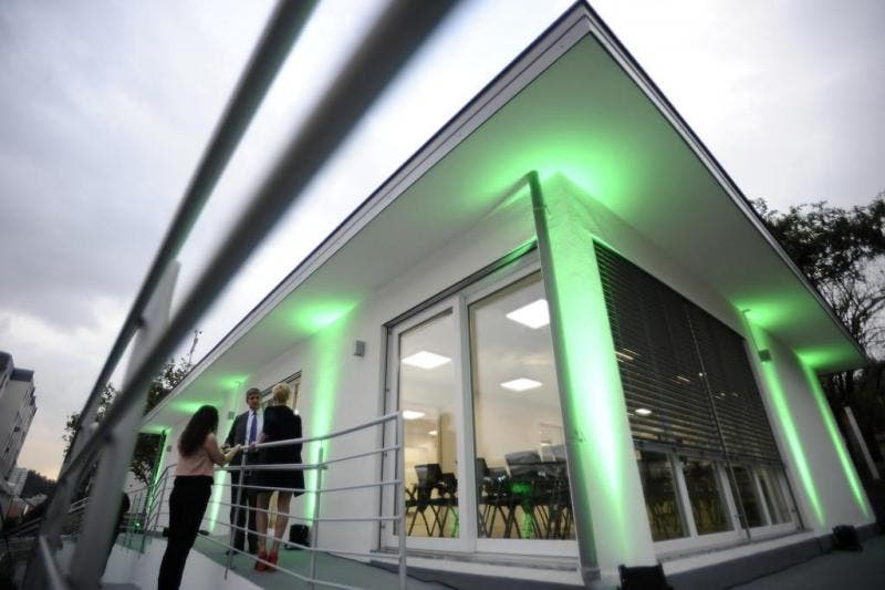 A textura das paredes até lembra a alvenaria – mas nesse caso é só fachada. A casa de 200 metros quadrados inaugurada ontem na Rua Harry Pofhal, ao lado do Instituto Senai de Tecnologia Ambiental, no bairro Escola Agrícola, em Blumenau, não é uma construção comum. Está mais perto de uma meta de moradia sustentável. Trata-se na verdade do primeiro protótipo nas Américas desenvolvido pelo instituto italiano Habitech Trento com apoio do Sindicato da Indústria da Construção de Blumenau (Sinduscon) e do Sistema Fiesc.