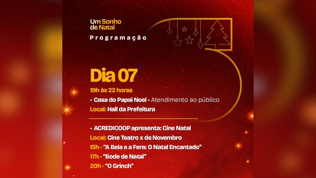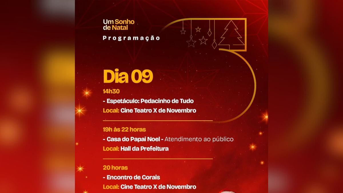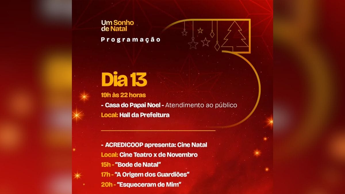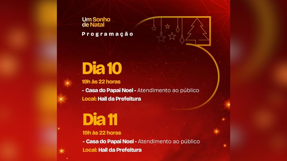 A programação especial da cidade promete encantar as famílias com apresentações, luzes, atividades culturais e a tão esperada Casa do Papai Noel, trazendo a alegria do “Bom Velhinho” para todas as idades.