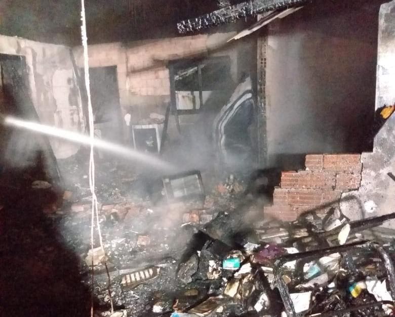 O incêndio começou por volta da meia-noite. A casa de 100 metros quadrados de madeira e alvenaria foi tomada pelas chamas. Um dos netos, que é cadeirante, foi retirado do local por um vizinho. A equipe do Corpo de Bombeiros foi acionada para conter o fogo. Cerca de 5 mil litros foram utilizados para apagar o incêndio e fazer o rescaldo.