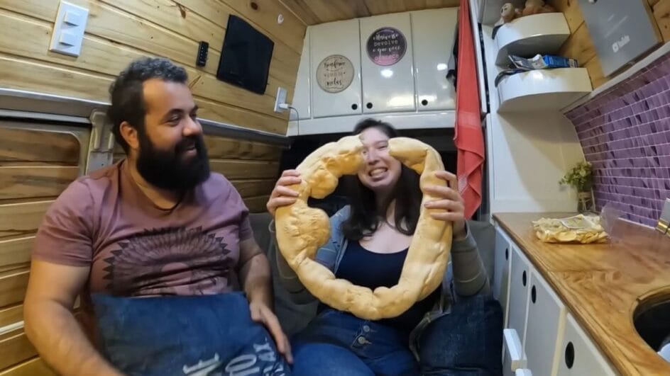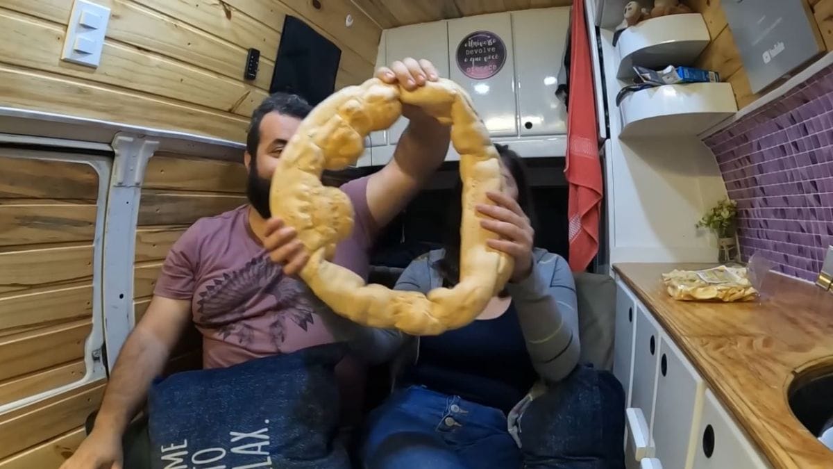 Além desses pratos, os dois resolveram provar uma rosca de polvilho macia, receita comum no dia a dia de diversos catarinenses.