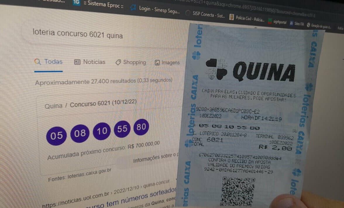 Também foram achados falsos bilhetes premiados de loteria, utilizados por criminosos em golpes na rua. Havia ainda no local bobinas de papel térmico e uma impressora própria para fabricá-los.