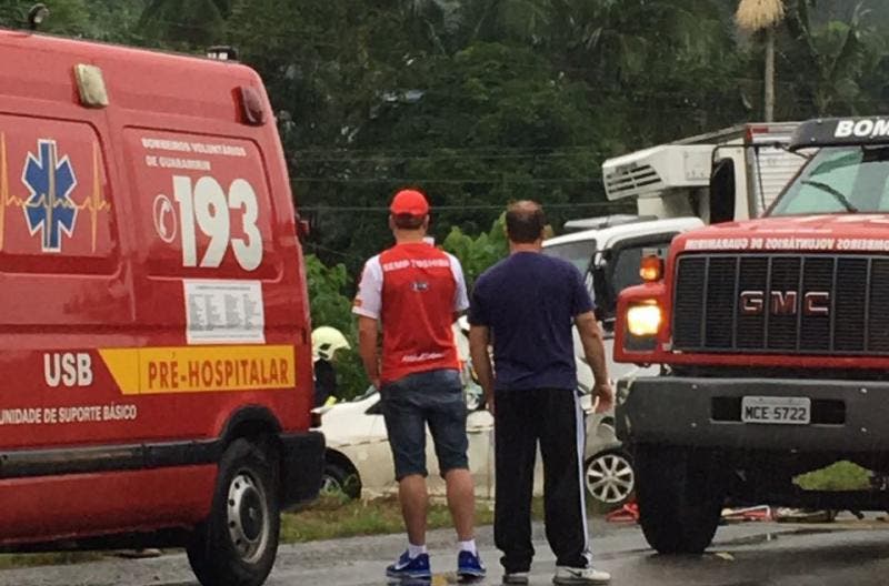 Um caminhão, com placas de Blumenau, e um Kia Picanto, com placas de Schroeder, acabaram se envolvendo em uma colisão transversal. O condutor do veículo foi identificado como Eduardo Kosloski, 24 anos, e estava com a esposa dele, Vanuza Kosloski, 21 anos. Os dois não resistiram aos ferimentos e morreram no local do acidente. O motorista do caminhão, de 34 anos, não se feriu com gravidade.