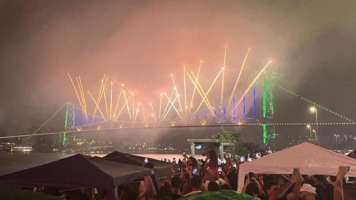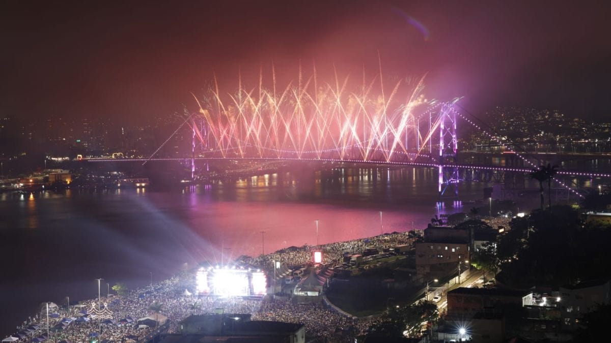 Foi assim, então, que já há alguns minutos adentro de 2026, os olhos de quem estava nos pontos estratégicos montados pela Prefeitura de Florianópolis se voltaram para a ponte Hercílio Luz, que em 2026 celebra seu centenário. Com mais tempo do que o habitual, a queima de fogos em formato de cascata levou a multidão à loucura.