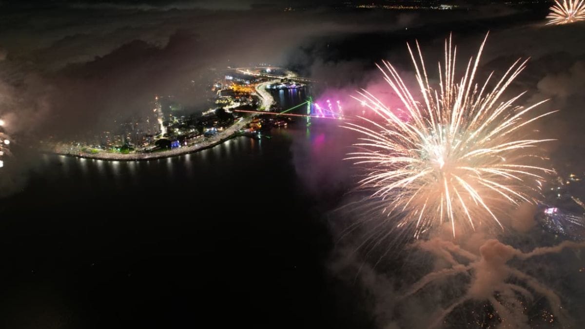 Florianópolis recebeu o ano de 2026 com uma novidade: nove balsas com fogos tanto na Beira-Mar Norte quanto na Beira-Mar Continental, além de uma próxima ao Parque de Coqueiros. Assim, todo o público pôde contemplar o espetáculo de forma privilegiada, com fogos de baixo impacto sonoro, conforme estabelece a legislação municipal.