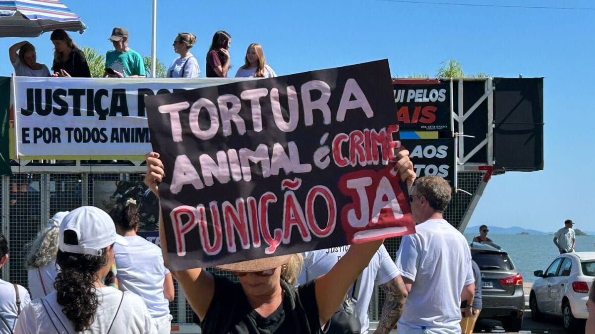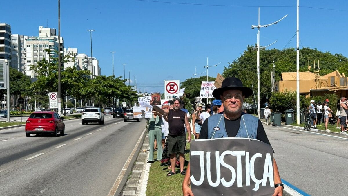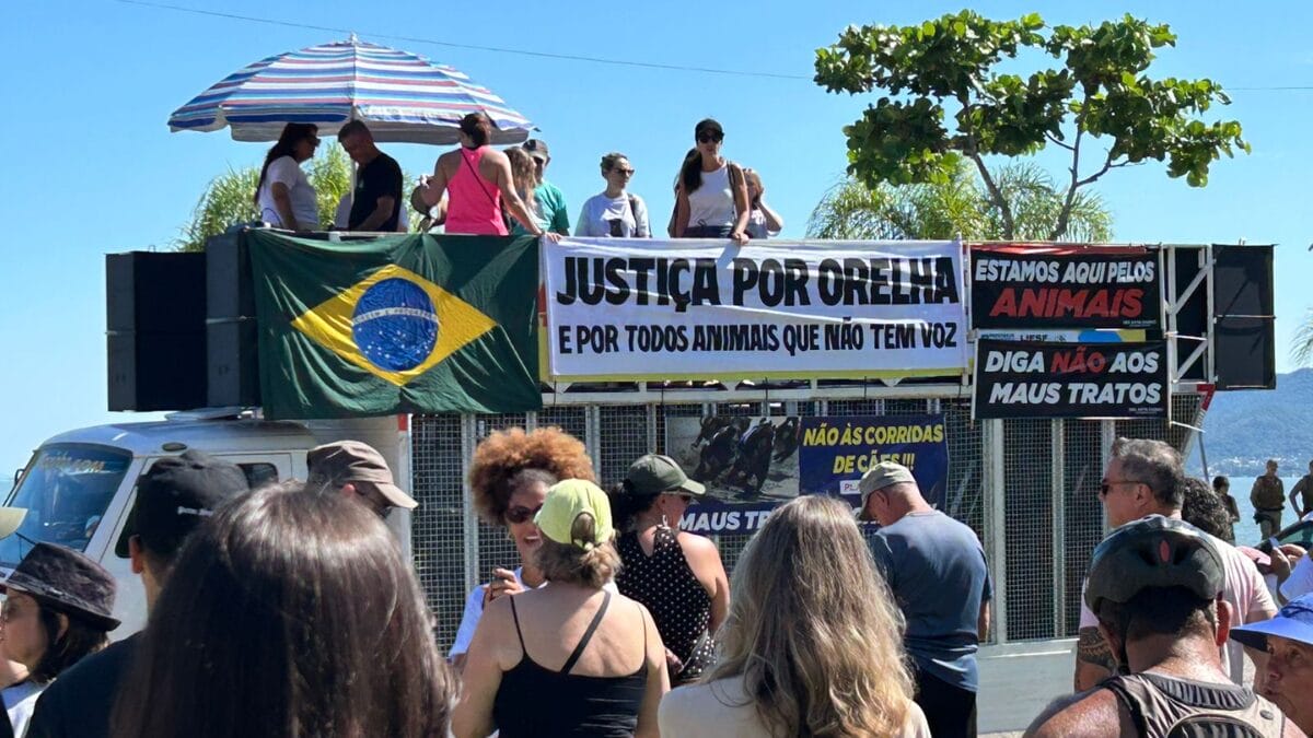 Manifestantes se reuniram na manhã deste domingo (1°), na Avenida Beira-Mar Norte, em Florianópolis, para pedir justiça no caso do cão comunitário Orelha, vítima de maus-tratos no início de janeiro na Praia Brava, na região Norte da capital catarinense.