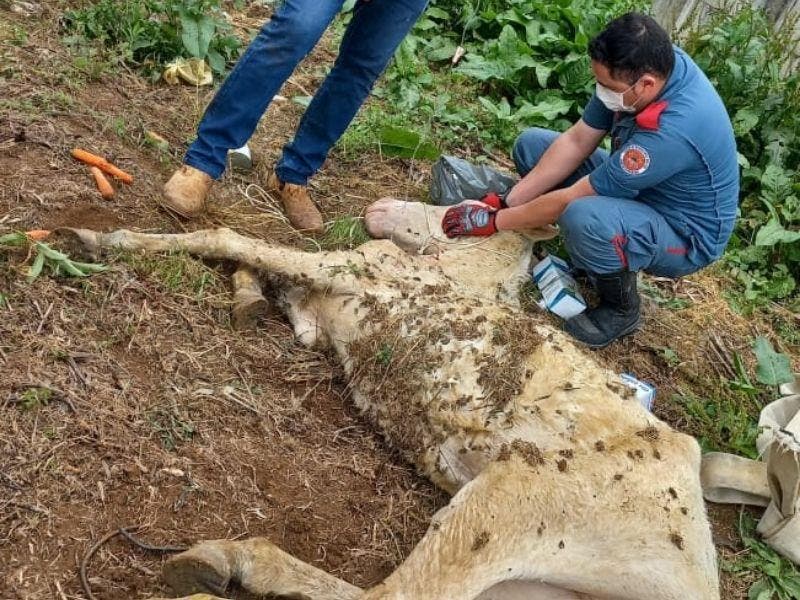 De acordo com informações dos socorristas, a guarnição foi acionada para a rua Antonio Grosskopf e, quando chegou ao local, encontrou o animal caído no chão. Uma equipe de resgate de animais também foi chamada para dar suporte à ocorrência.