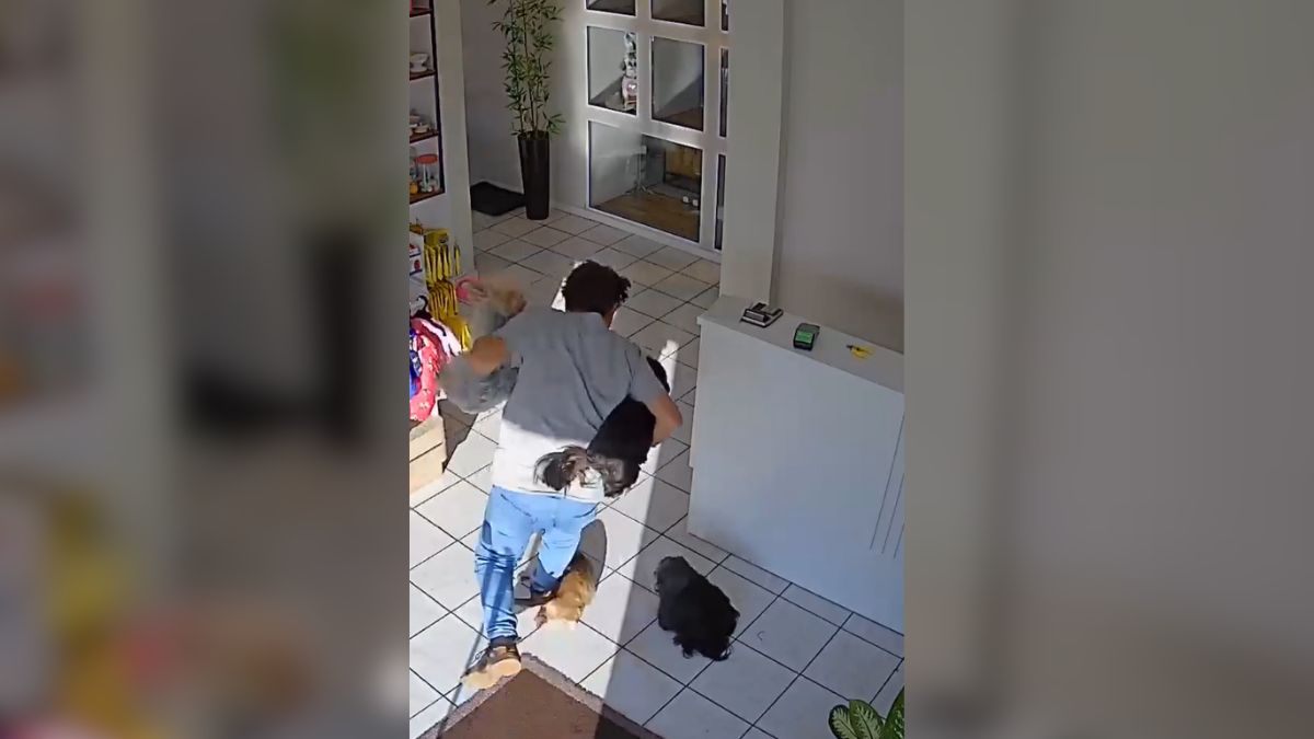 Uma cena caótica dentro de um petshop de Joinville viralizou nas redes sociais. A câmera de segurança do estabelecimento flagrou o momento em que um homem entra, tropeça em um gato e cai. O vídeo já soma quase 20 milhões de visualizações nas redes sociais.