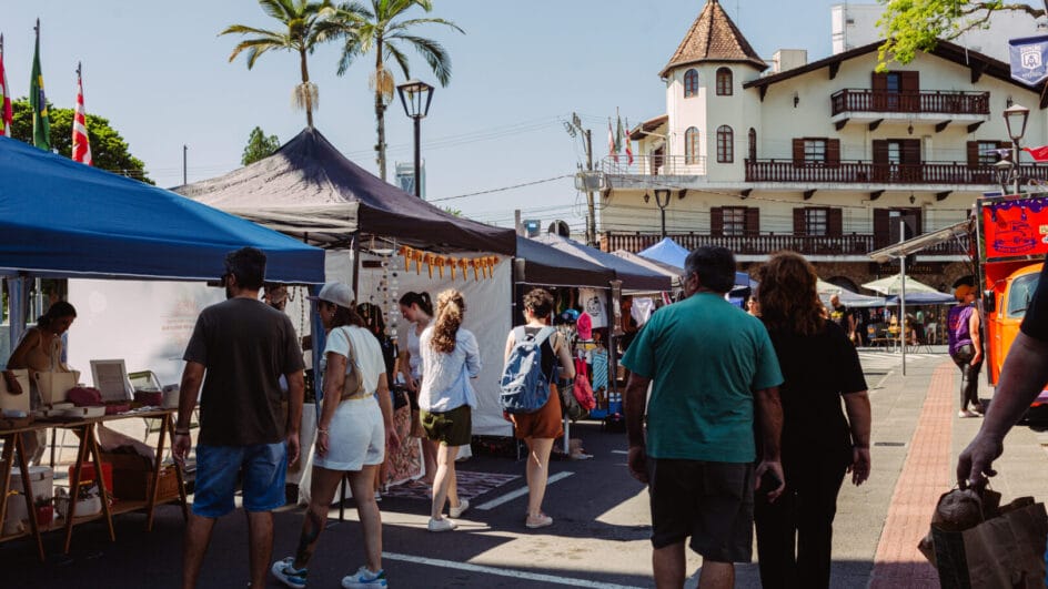 A rua em frente à Prefeitura de Blumenau volta a se transformar em um grande ponto de encontro da economia criativa no domingo, 9 de novembro, das 9h às 17h, com mais uma edição da Feira da Estação. Realizado pela Microponto Produções, o evento reúne 45 marcas autorais dos segmentos de arte, moda, design, decoração e gastronomia, além de uma programação cultural repleta de música, oficinas e exposições.
