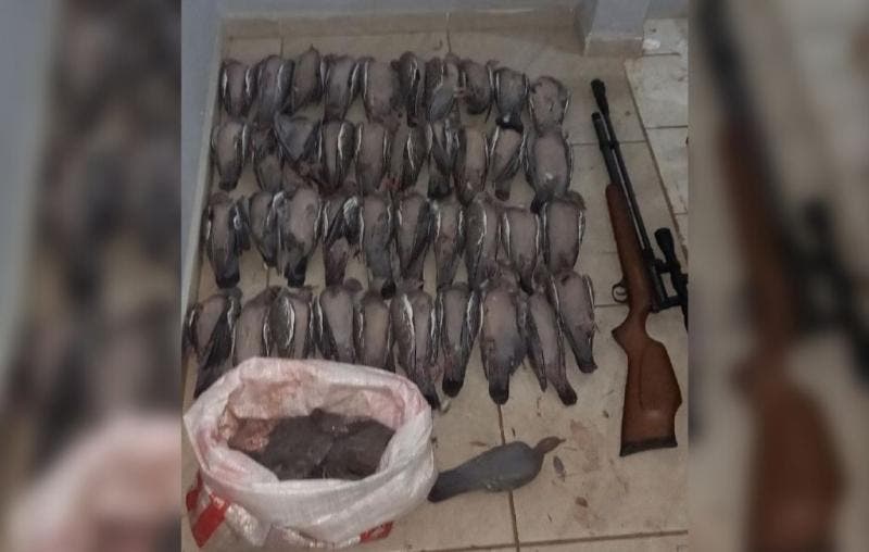 Ao menos 40 pombas foram encontradas mortas no interior de Chapecó, no Oeste de Santa Catarina, neste sábado (9). Um homem, de 36 anos, suspeito por abater as aves, foi preso pela polícia.