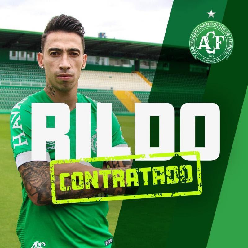 A Chapecoense oficializou o acerto com o atacante Rildo, ex-Vasco, até o final de 2019. O anúncio do jogador, que já estava na cidade desde a semana passada, foi pelas redes sociais.