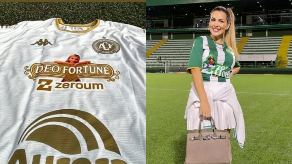 A presença da imagem de Deolane Bezerra ocorreu por conta da parceria com a marca Deo Fortune, ligada à influenciadora. A empresária e advogada também é dona da Zeroumbet, casa de apostas que patrocina a Chapecoense, e colocou uma ação pontual para a partida deste domingo, que marcava a estreia do uniforme 2 do clube na Série A 2026.
