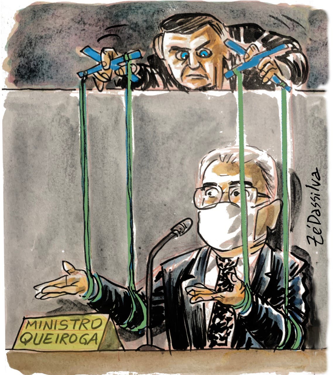 A charge do Zé Dassilva desta terça-feira (8) trata do depoimento de Marcelo Queiroga, ministro da Saúde, na CPI da Pandemia. Senadores consideraram suas decarações contraditórias e pouco assertivas.