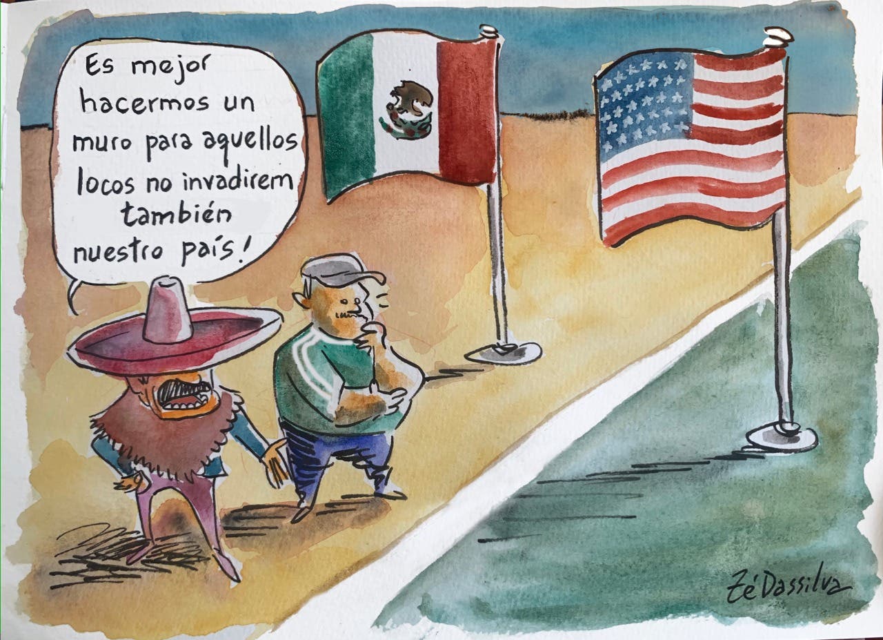 A charge do Zé Dassilva desta segunda-feira(11) tratado muro que Donald Trump prometeu construir entre os Estados Unidos e o México e a invasão ao Capitólio, feita por apoiadores do presidente.