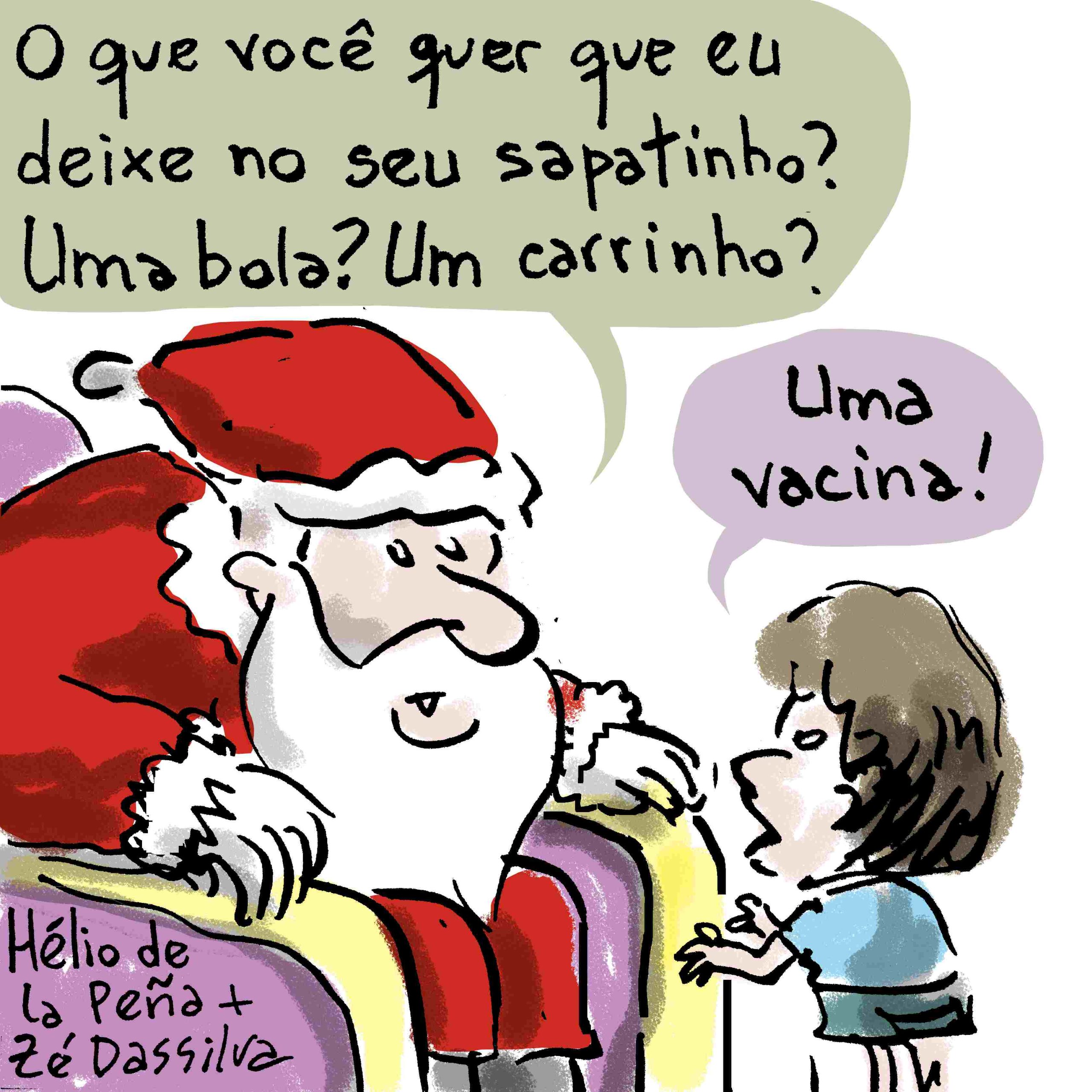 A charge do Zé Dassilva desta quarta-feira (22) trata da vacinação de crianças entre 5 e 11 anos contra a Covid-19, que já foi autorizada pela Anvisa, mas ainda não teve data de início definida pelo Ministério da Saúde e o governo federal.