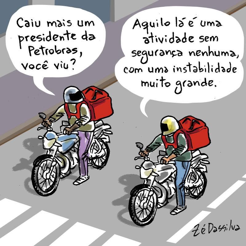 A charge do Zé Dassilva desta terça-feira (21) aborda a renúncia de José Mauro Coelho ao cargo de presidente da Petrobras, anunciada nesta segunda-feira.