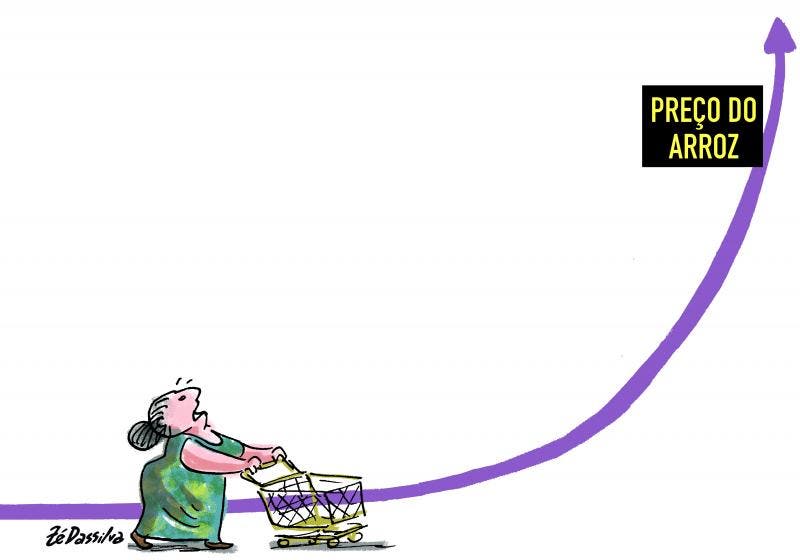 A charge de Zé Dassilva desta quarta-feira (9) trata do aumento do preço do arroz.