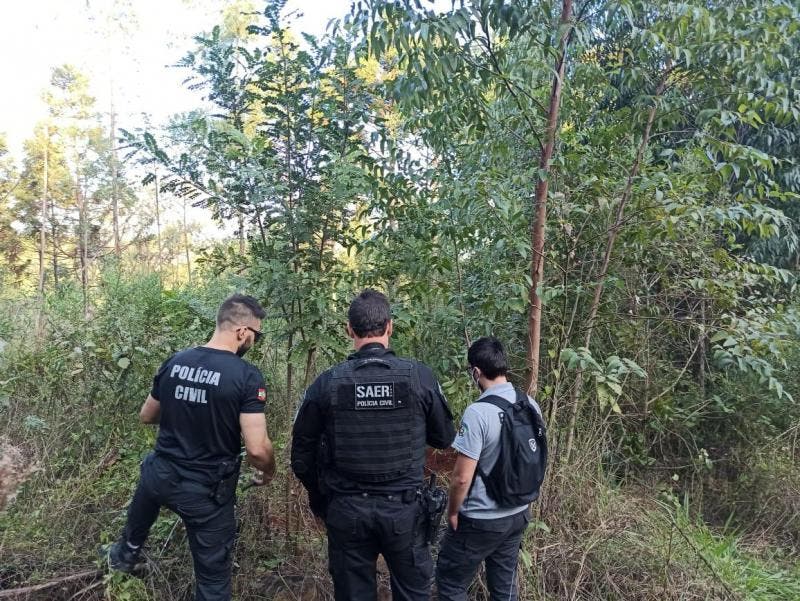 – Depois de inúmeras diligências, fomos a campo e durante a noite de ontem (18) e esta madrugada (19), fizemos inúmeras escavações na região indicada, mas não encontramos os corpos. Achamos, no entanto, o chinelo de uma das vítimas, o que nos deu convicção sobre a localização.