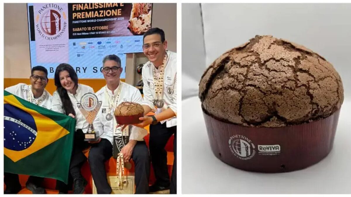 — O produto tem uma massa macia e leve, com aroma intenso e levemente terroso, marcado pela nobreza do cacau. Nosso panettone de chocolate foi um tributo à elegância da tradição italiana em diálogo com a ousadia da confeitaria contemporânea— explicou Brunno Malheiros, capitão da equipe e dono da confeitaria Cheiro do Pão, de Fortaleza (CE).