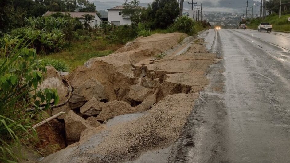 De acordo com o Corpo de Bombeiros Militar e a Polícia Militar Rodoviária, parte da margem da pista foi comprometida. O local está sinalizado com cones.
