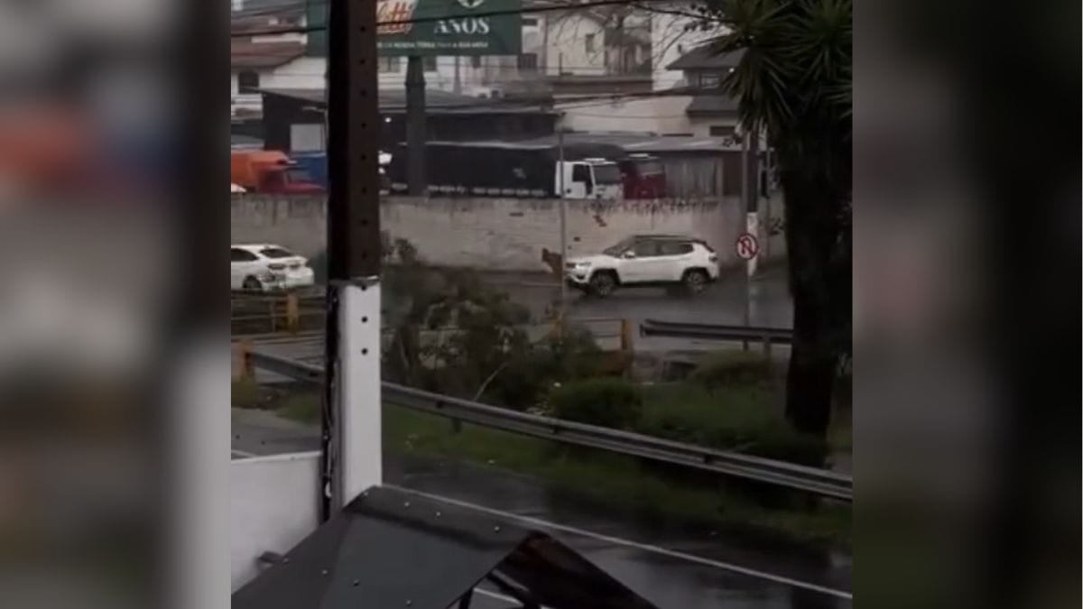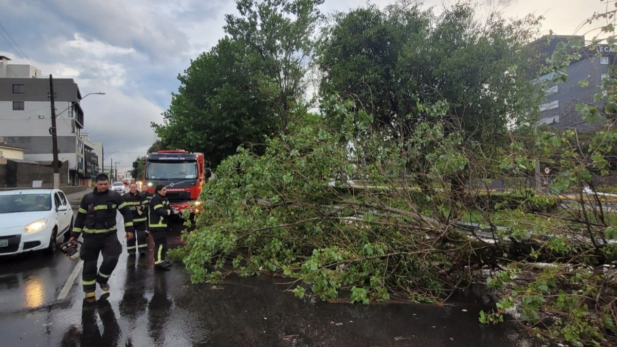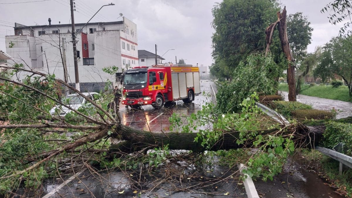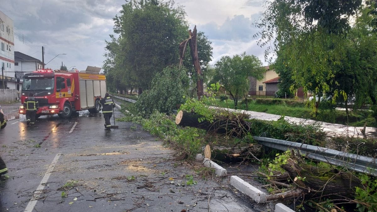 Imagens compartilhados em redes sociais mostram telhados sendo destruídos e árvores caídas em rios e ruas devido à chuva de domingo (30) em Lages. Os bombeiros militares e a Defesa Civil atuaram em ocorrências pela cidade. Só na Avenida Belizário Ramos. Devido ao forte vendaval, três árvores caíram e travaram totalmente o tráfego de veículos.